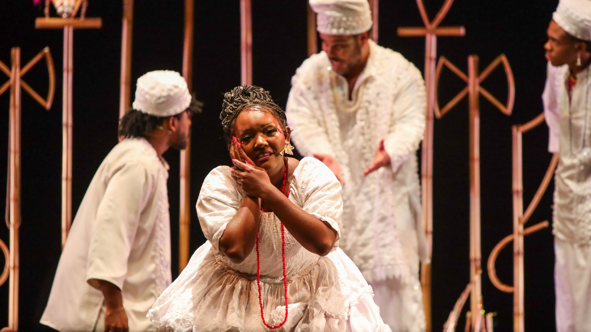 Com músicas, dança e uma história criada especialmente para o teatro, o espetáculo celebra a cultura negra, a memória dos antepassados e a força do trabalho coletivo.